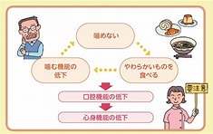 口腔機能低下症は放置すると食べる・話す・飲み込む力がさらに低下し、栄養不良や誤嚥性肺炎のリスクが高まります。