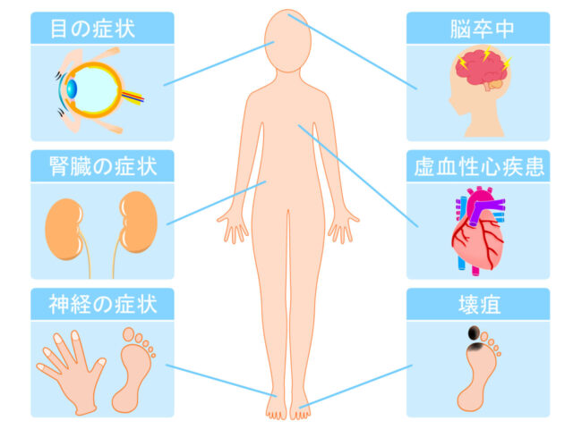 さらに、糖尿病は脳卒中や心筋梗塞といった大血管疾患のリスクも高めます。