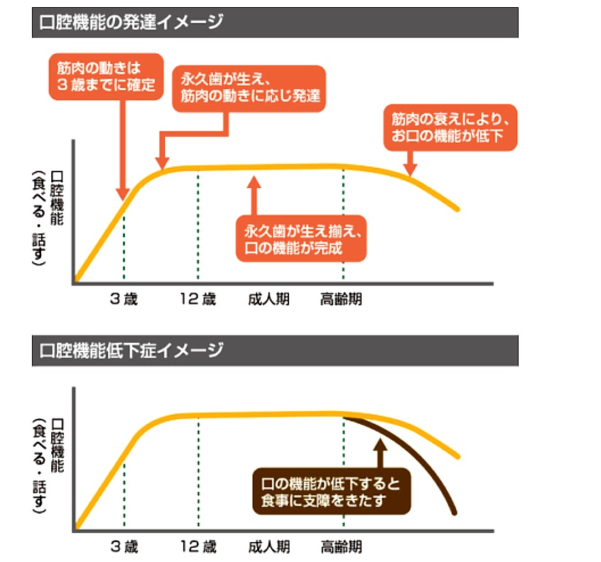 口腔機能発達と低下のイメージ図