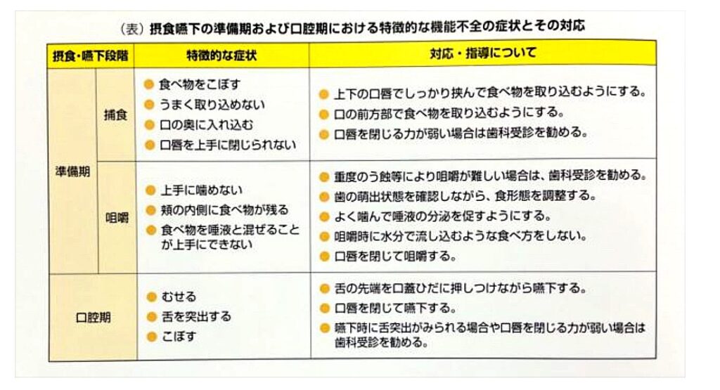 摂食嚥下の準備期・口腔期の症状と対応表