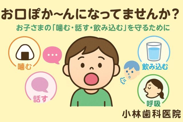 「お口ぽか~ん」になってませんか? お子さまの「噛む・話す・飲み込む」を... 2025.09.04 歯科情報ブログ お子さまの「噛む・話す・飲み込む」を守るために—口腔機能発達不全症を知ろう1. 口腔機能発達不全症とは?成長期のお子さまに見られる、「噛む」「飲み込む」「話す」「呼吸する」といった基本的な口の機能が十分に発達していない状態です。早期に気づく... 続きを読む