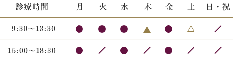 ※木曜日は、9:30~12:30までの診療となる日があります。